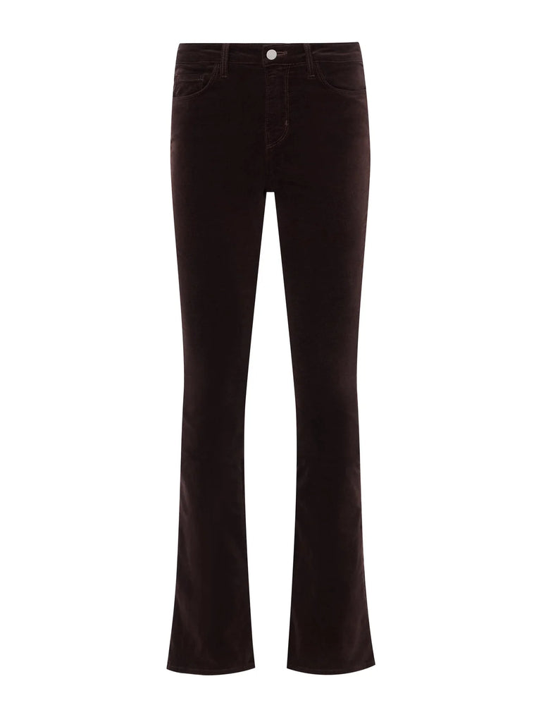 This style was featured in our Fall '25 NYFW presentation. The Stevie features a clean straight leg fit crafted from luxurious stretch velvet. Now in coffee bean brown.