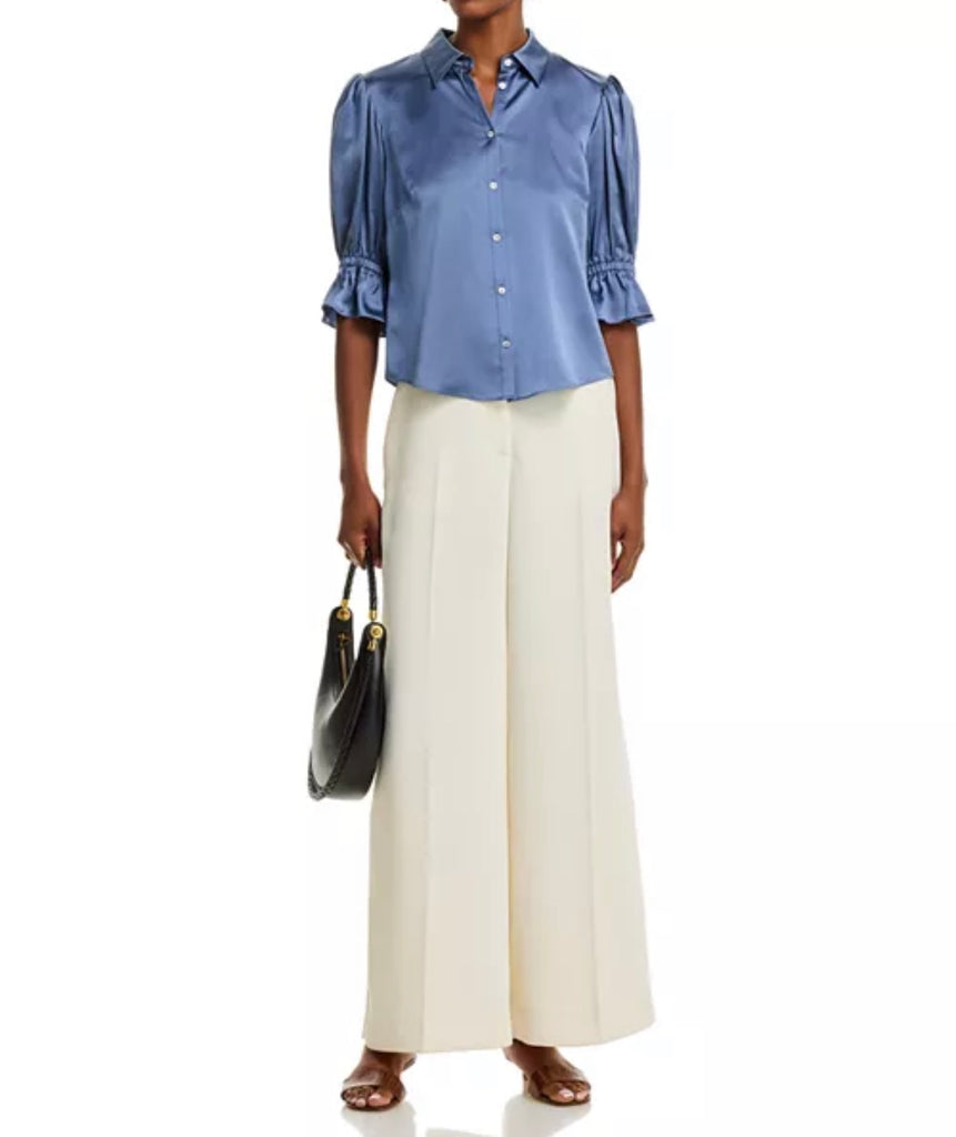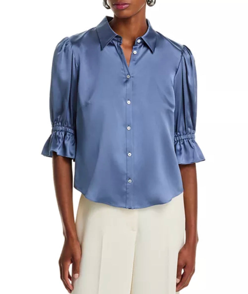 • Elbow-length sleeves with elasticized ruffled cuffs