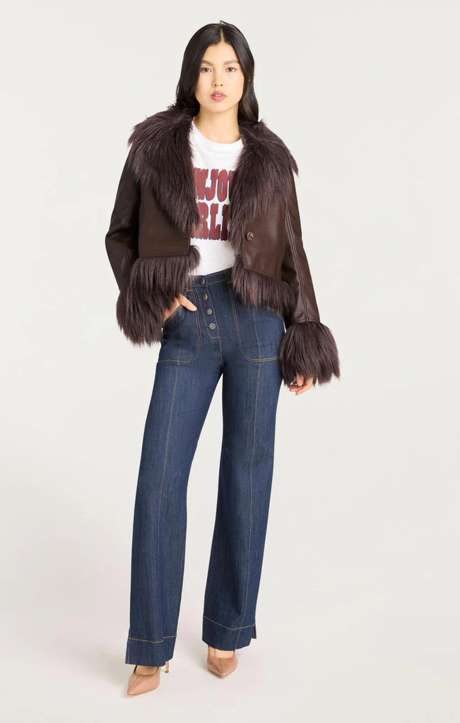 Make a statement with the Panama Jacket. This refined cropped design features a faux fur trim along the collar, sleeves, and hem, adding luxurious texture to elevate the outfit. Stay warm without compromising on style!