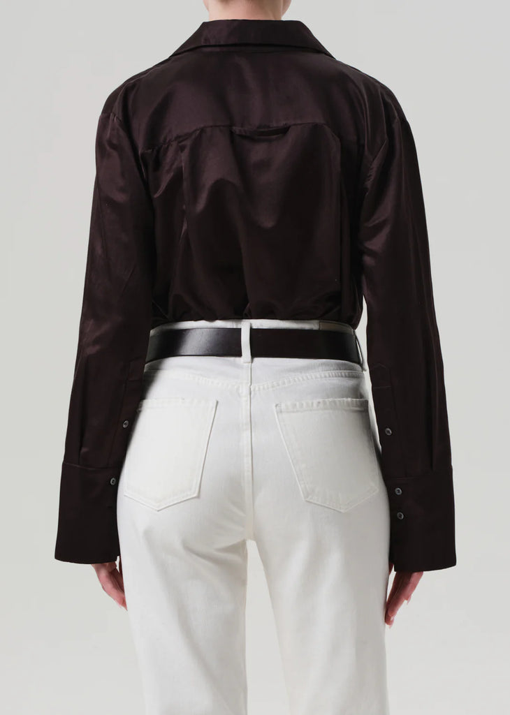 Refined and feminine, the Camilia Shirt is cut from an ultra-smooth cotton-silk blend that drapes effortlessly. The long sleeve silhouette features a clean button front and subtle structure, while deep Chocolate brown adds richness and warmth. Perfect tucked into denim or worn loose over tailored trousers.