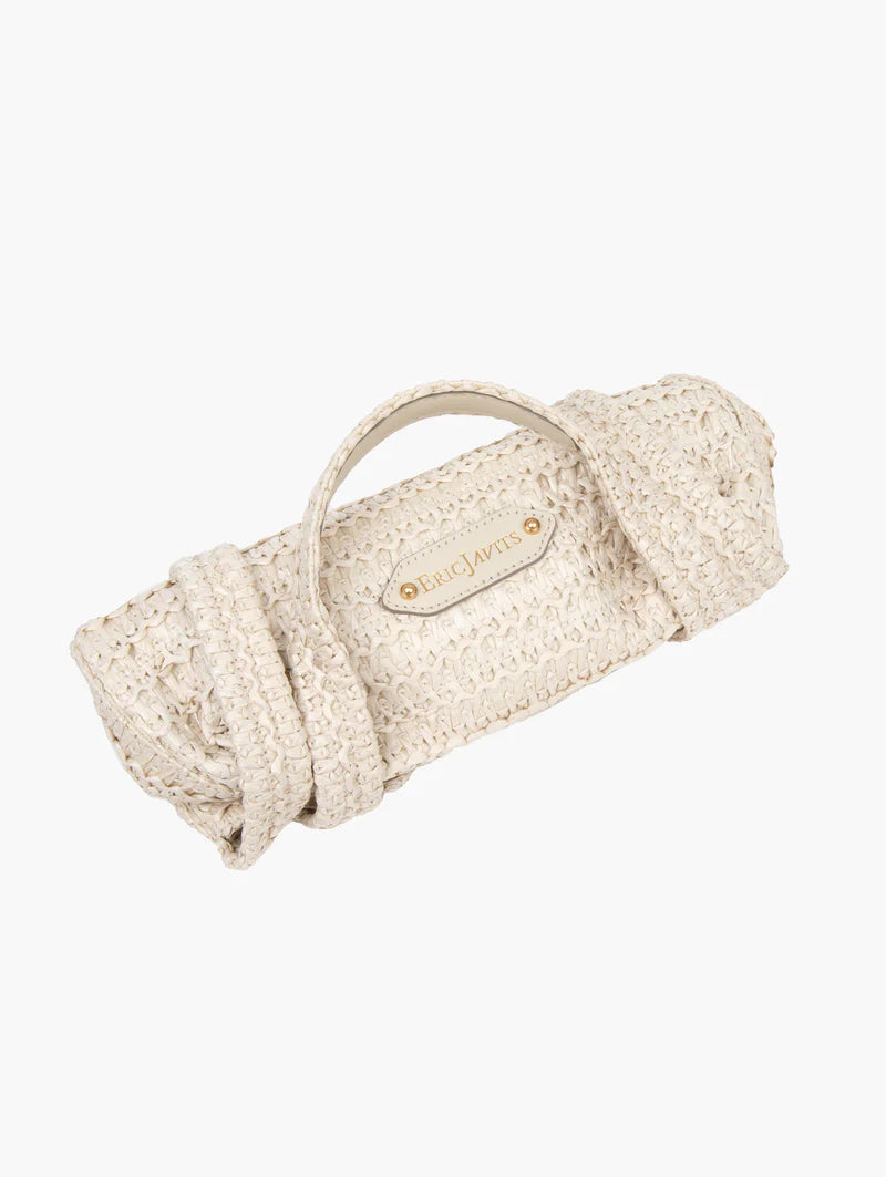 A women's designer crossbody bag for sale online of woven raffia with top zipper closure is super cute for use throughout spring-summer months.