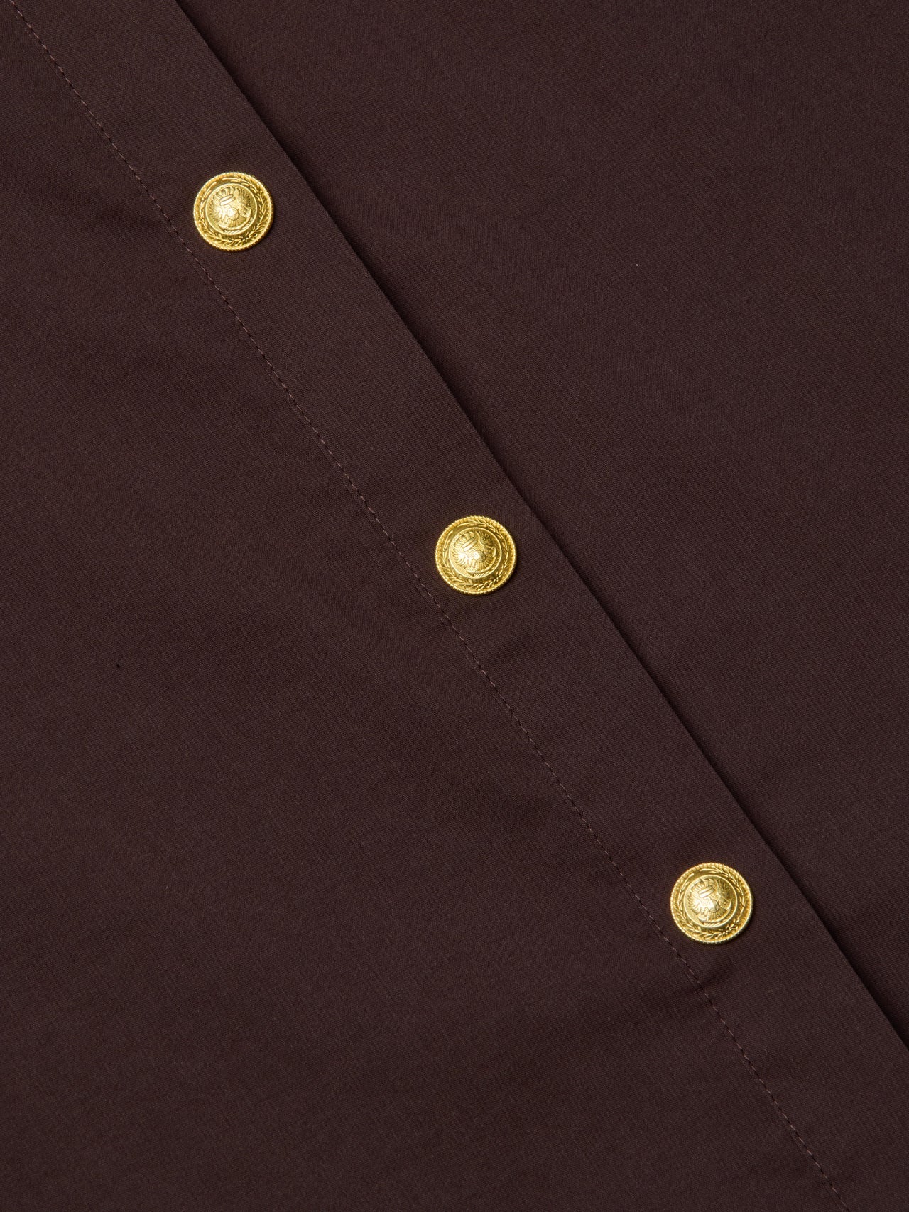 We’ve given the classic poplin shirt the L’AGENCE treatment with gold buttons for a hint of glamour. In an organic cotton blend and easy relaxed fit, Ellery is the long sleeve blouse you’ll reach for every season. Now in coffee brown.