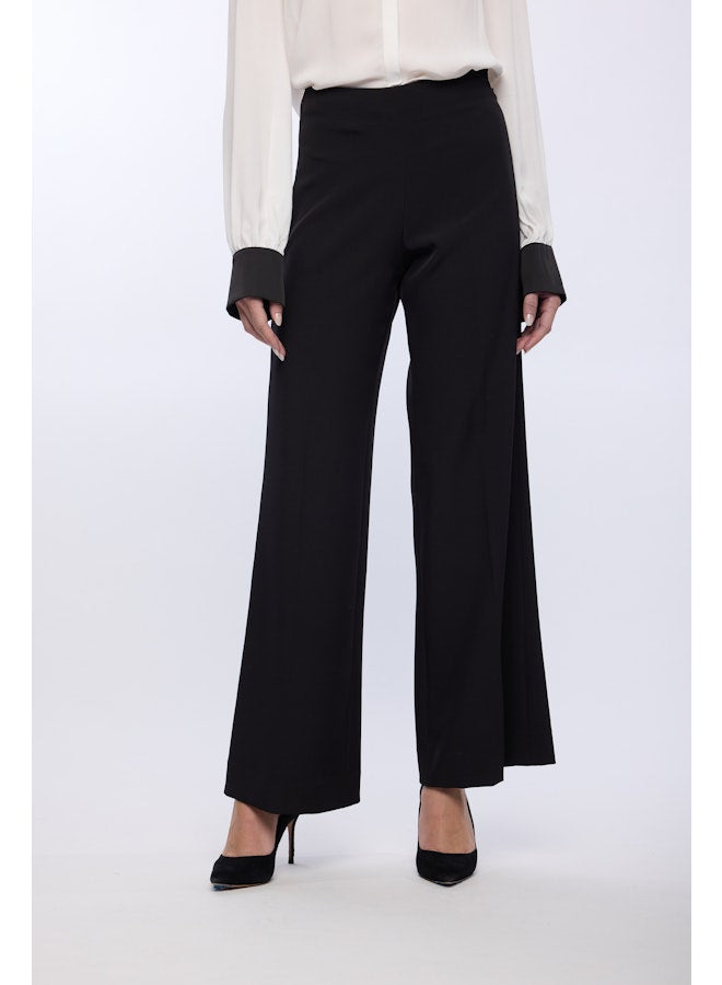 STRETCH CREPE 11" HIGH-WAISTED CLEAN WAIST DETAIL WIDE LEG FULL-LENGTH PANTS 31 1/2" INSEAM