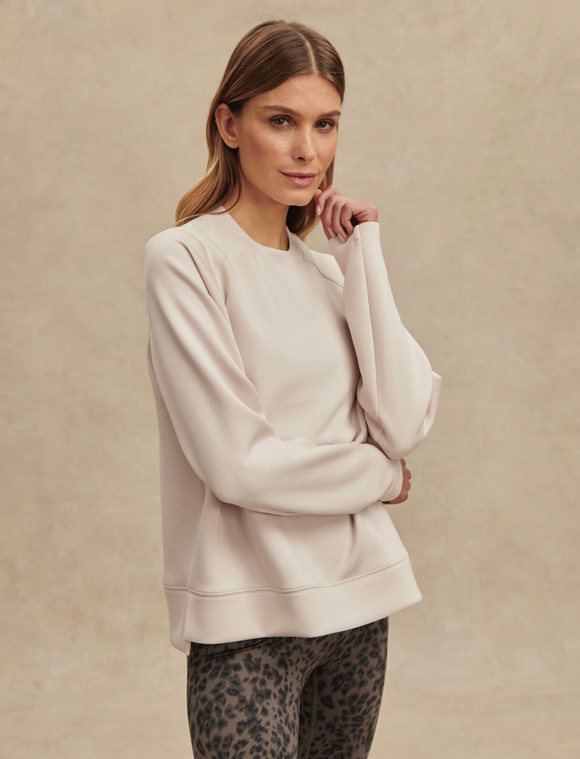 Cut to a clean, relaxed silhouette with a classic crew neck, the Zosia is elevated with subtle detailing and made for active layering. Crafted from our Lightweight Spacer fabric, it is soft, breathable, and versatile - perfect to throw on pre- or post-workout. Thoughtful design accents, such as the saddle sleeve details, pleats on the cuffs, and the split hems at the side complete the design.